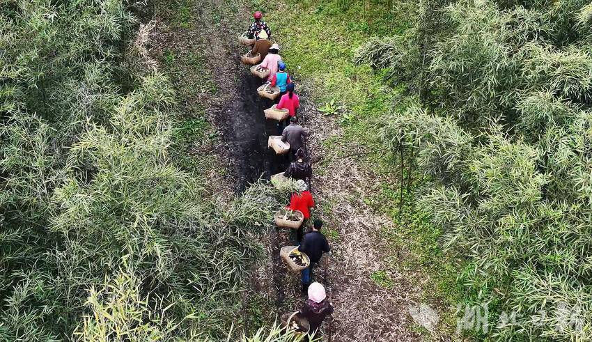 湖北日报客户端讯(通讯员伍玉华、叶丹阳、虞顺意 )春日暖阳,竹影婆娑。走进位于远安县鸣凤镇北门村的雷竹种植基地,连片的竹林郁郁葱葱,一根根饱满粗壮的竹笋破土而出。村民们提着竹篓,带着铲子,穿梭竹林间采挖、分拣。村民何晓艳高兴地说:“今年雨水好,笋子个头大、产量高,我们十几个人每天要采摘1万多斤!”